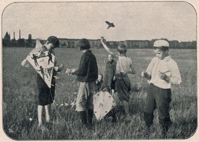 In Philadelphia hatten ein paar Jugendliche den Ehrgeiz, den grössten Drachen der Welt zu bauen. Was ihnen gelang. Aber konnte der Riesendrachen auch fliegen? Sie wurden von einem anderen Drachenerbauer zu einem Wettkampf mit seinem (nicht ganz so großen, aber besser konstruierten) Drachen aufgefordert. An einem „Kampf“ mit anderen Drachen wollten sie jedoch nicht teilnehmen, wie die Gartenlaube zum Foto erzählt. Wahrscheinlich, weil fraglich war, ob das riesige Gerät dann auch wirklich in der Luft segeln konnte.