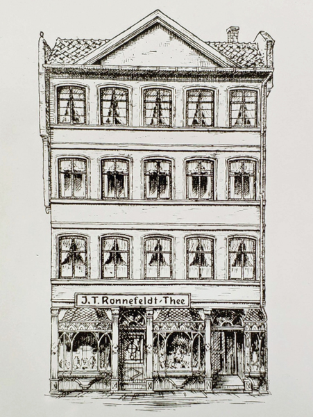 In der Rubrik „Firmen mit Tradition“ haben wir die Geschichte der Firma erzählt, die seit ihrer Gründung in Frankfurt ansässig ist. Dabei gab es im Verlauf der Zeit verschiedene Standorte. Anfang des 20. Jahrhunderts ist “Ronnefeldt” bereits eine etablierte Teemarke. Bis dato in einem grossen Haus an der Frankfurter Zeil ansässig, zieht das Unternehmen 1904 in ein neues Domizil, da das bisherige einem Kaufhausneubau weichen muss.