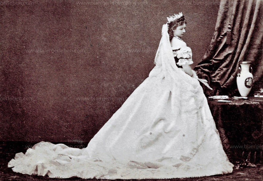 Kaiserin Auguste Viktoria im Hochzeitskleid mit Schleppe